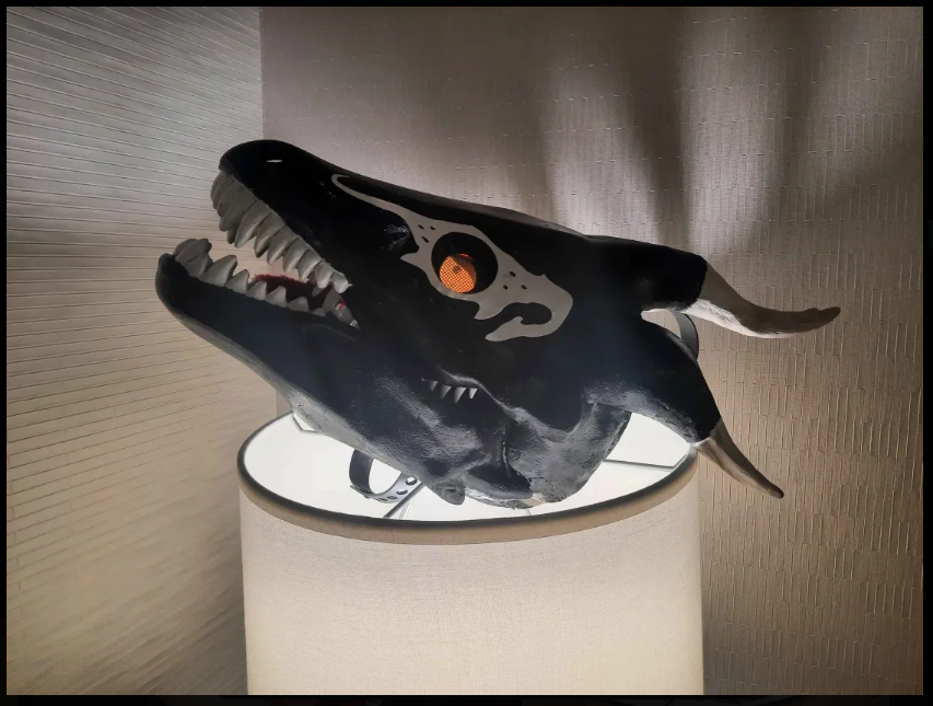 The digital eyes got moved to where the old viewports on the dino mask were, so I ended up with very small viewport tunnels that extend forward.