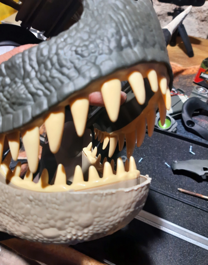 I started this project last year to have something to wear at Midwest Fur Fest. I’ve never made a mask before, but I saw a Jurassic World Rebirth T-Rex Rage N Roar Mask and picked it up for $35 because it has awesome digital eyes and I’ve seen some cool dino mask projects before.